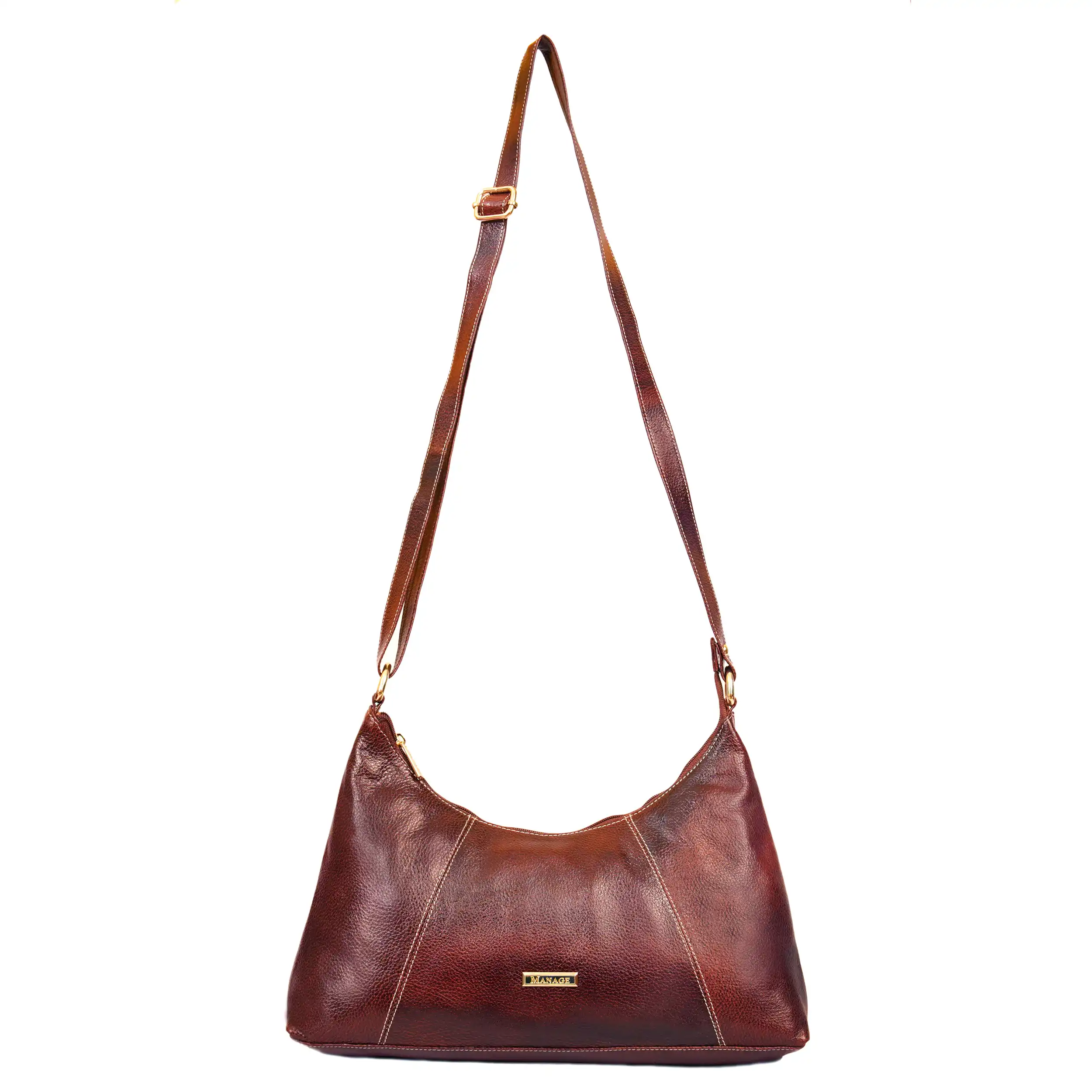 It is Medium sized leather sling bag that you can carry it in different places.