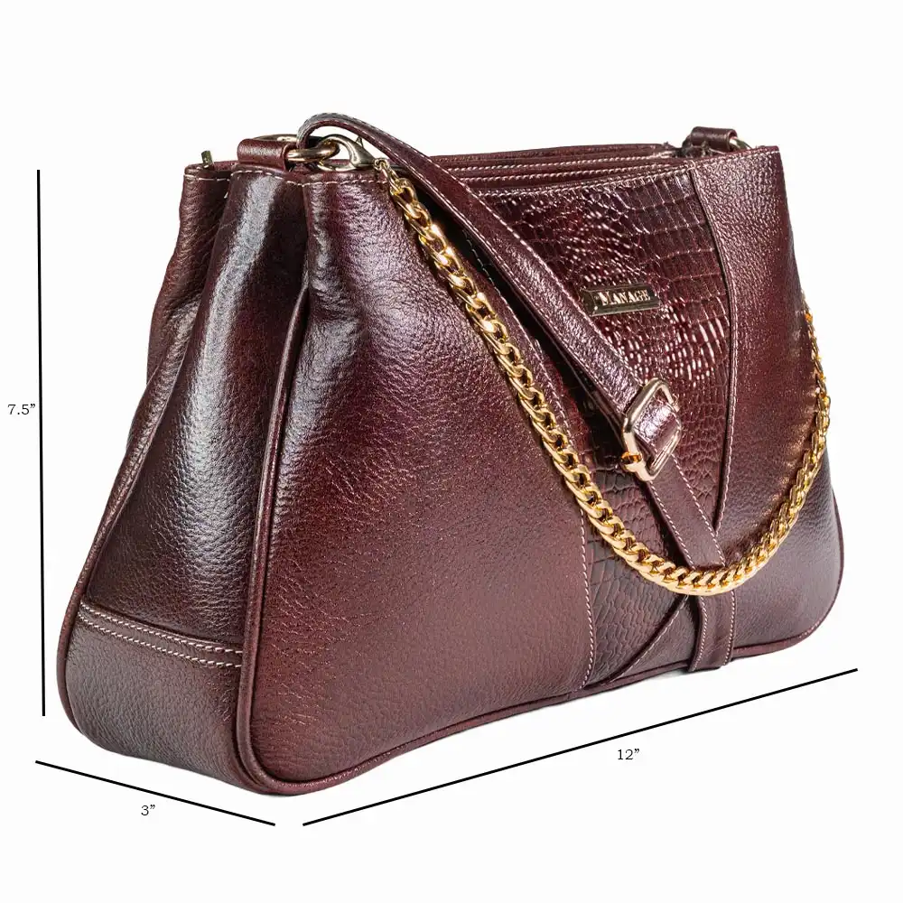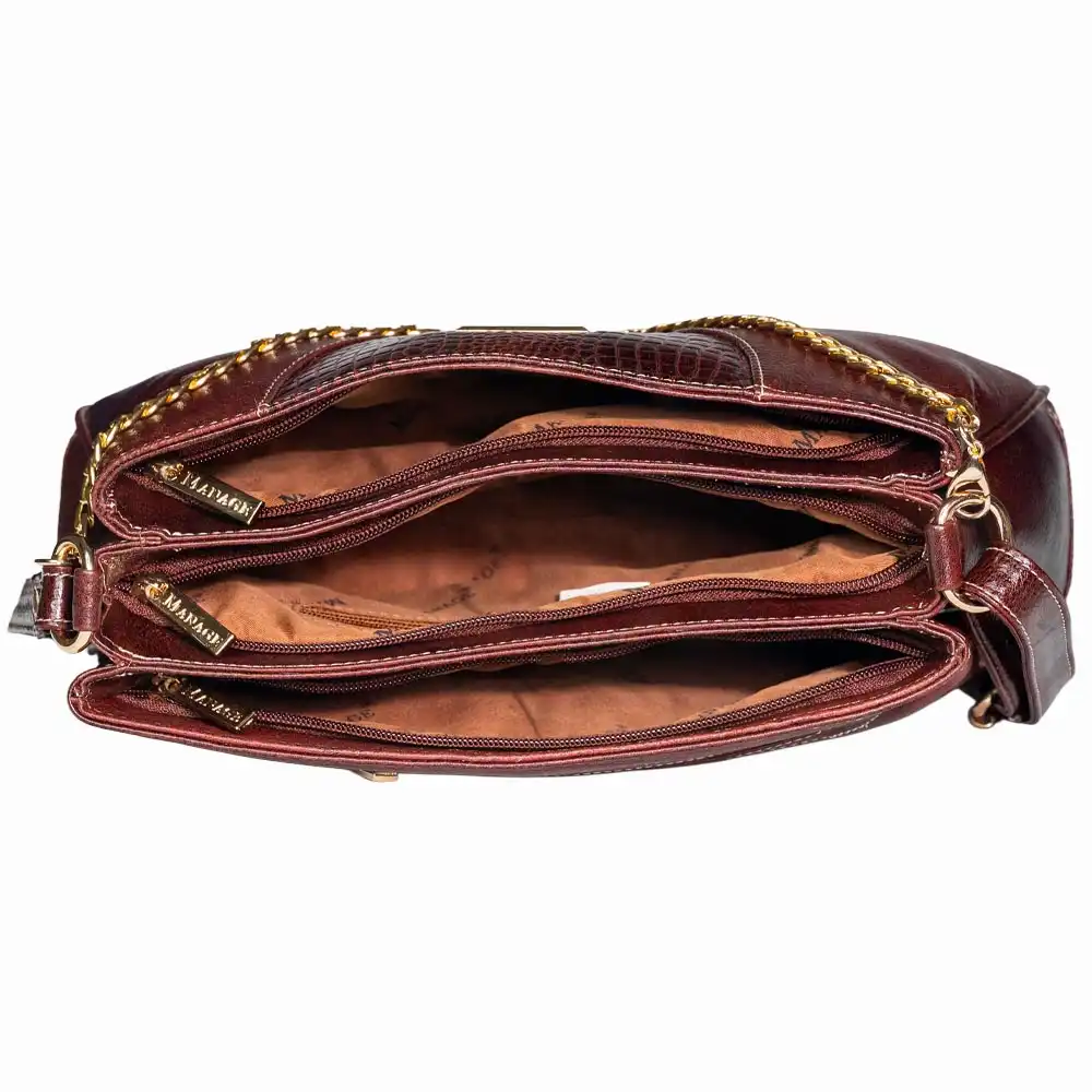 This sling bag has three main compartments, one inner utility pocket, one mobile pocket, one back zip pocket, one front zip pocket and one front pocket and 60″ long strap.